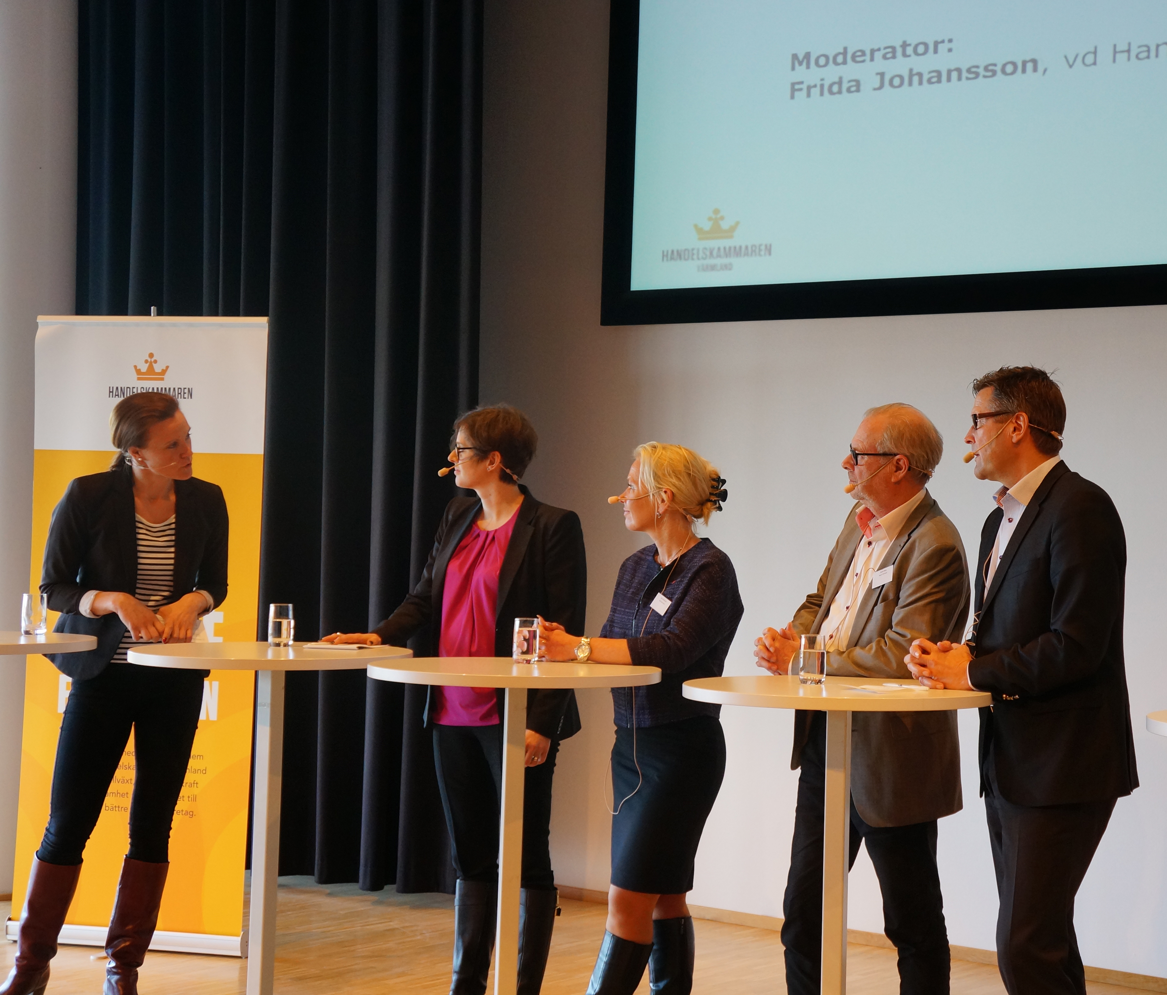 Under paneldiskussionen diskuterades bland annat hur vi skapar ett hållbart transportsystem som inte hotar konkurrens- och innovationskraften samt vad som krävs för att man ska ställa om till en annat transportslag. I panelen deltog Karolina Boholm, Skogsindustrierna, Infrastrukturminister Anna Johansson, Tomas Riste, Region Värmland och Håkan Wennerström, Trafikverket Region Väst.